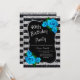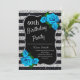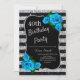 Birthday Silver Black Stripes Glitter Blue Roses Invitation