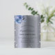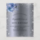 For an elegant 18th (or any age) birthday. A stylish dark faux silver metallic looking background. Decorated with faux glitter dust and blue florals. Personalise and add a name, age and party details. The name is written with a hand lettered style script