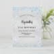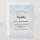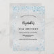 For an elegant 21st (or any age) birthday. A faux silver looking background. Decorated with blue faux glitter, sparkles. Personalise and add a name, age and party details. The name is written with a hand lettered style script.
