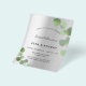 A modern, elegant birthday invitation, any age . Faux silver metallic looking background decorated with eucalyptus greenery, sprigs. Personalise and add a name and party details. Black coloured letters.