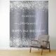 A tapestry for a girly and glamourous 21st (or any age) birthday party. A faux silver looking background with elegant faux silver glitter, sparkles. The text: The name is written in white with a modern hand lettered style script with swases. To keep the swashes only delete the sample name, leave the spaces or emoji's in front and after the name. Personalise and add a name, age 21 and a date. Can be used as wall decor for the party or as a photo booth backdrop.