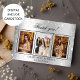 Add 3 of Your birthday photos, vertical size, a date, name, and the thank you note. A faux silver looking background and faux glitter, sparkles. Black text and frame. The text: Thank you on the front and your name on the back are written with a stylish hand lettered script.