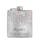 Birthday silver glitter pink foil sparkle monogram hip flask