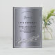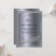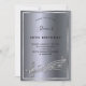 A trendy, modern 50th birthday party invitation card. A faux silver metallic looking background, with a frame and music notes, black coloured letters. Personalise and add a name and party information.