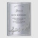 A trendy, modern 50th birthday party magnet invitation card, and it will also serve as a Save the Date reminder for your guests. A faux silver metallic looking background, with a frame and music notes, black coloured letters. Personalise and add a name and party information.