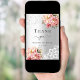 A modern and elegant birthday thank you card. A faux silver looking background. Decorated with blush pink roses, florals flowers and lace. On the front the text: Thank You.