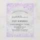 For an elegant 21st (or any age) birthday. A faux silver metallic looking background. Decorated with purple faux glitter dust. Personalise and add a name, age and party details. The name is written with a hand lettered style script