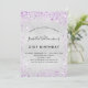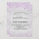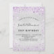 For an elegant 21st (or any age) birthday. A faux silver metallic looking background. Decorated with purple faux glitter dust. Personalise and add a name, age and party details. The name is written with a hand lettered style script