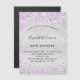 For an elegant 50th (or any age) birthday. A faux silver looking background. Decorated with purple faux glitter sparkles. Personalise and add a name, age and party details. The name is written with a hand lettered style script