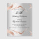 A faux silver looking background. Decorated with rose gold mable veins. Personalise and add a name, age and party details. The name is written with a hand lettered style script