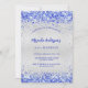 For an elegant 18th (or any age) birthday party. A faux silver looking background. Decorated with royal blue confetti. Personalise and add a name and party details. The name is written with a hand lettered style script