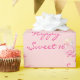 Iridescent soap bubble pattern on pink background with happy birthday Sweet 16 text.