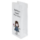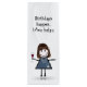 Cute stick figure girl with sneakers, hair, blue denim dress, pearl necklace, and red wine glass for birthday humour.