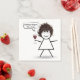 Stick girl with curly hair and glass of red wine wearing eyeglasses for a birthday party on white background.