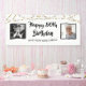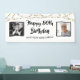 Celebrate an 80th birthday and welcome party guests with this editable white and black banner sign featuring a border of gold and white string lights, two photos (perhaps then and now photos) and HAPPY # BIRTHDAY NAME in a modern hand lettered brush script font. PHOTO TIP: For fastest/best results, choose a photo with the subject in the middle and/or pre-crop it to a square shape BEFORE uploading and use the CHANGE tab in the PERSONALIZE section. CHANGES: Change the background colour, choose a styled graphics background or change the personalised text font style, colour, size and placement by clicking on CUSTOMIZE FURTHER under the PERSONALIZE section. Contact the designer via Zazzle Chat or makeitaboutyoustore@gmail.com if you'd like this design modified, on another product or would like coordinating items.
