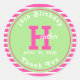 Birthday Stripes Pink⎮White Green Classic Round Sticker