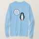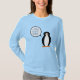 Here, Ms. Penguin models her birthday suit on this long sleeved women's t-shirt. She looks neat and clean and ready for any event or celebration. Her talk bubble lets you personalise by adding text to make her say whatever you like that is fit to print. You can celebrate any holiday or occasion. Remember, January 20th is Penguin Awareness Day. April 25th is World Penguin Day.