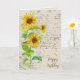 Bright yellow sunflower bouquet on brick wall sketch for birthday.