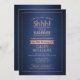Can you keep a secret? Invite family and friends to an elegant and exciting surprise birthday celebration with custom navy blue and copper party invitations. All wording on this template is simple to personalize, including message that reads "Shhh! It's a SURPRISE." The design features a modern striped border on a faux brushed metallic background, classic vintage art deco typography and stylish script calligraphy. Please note that copper is muted orange ombre color, not metallic foil. This card can be customized for any year or event type, and is suitable for either a man or a woman. Cheers and Happy Birthday!