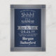 Can you keep a secret? Invite family and friends to an elegant and exciting surprise birthday celebration with custom navy blue and grey save the date postcard party invitations. All wording on this template is simple to personalise, including message that reads "Shhh! It's a SURPRISE." The design features a modern striped border on a faux brushed stainless steel background, classic vintage art deco typography and stylish script calligraphy. Please note that the silver is printed grey ombre colour, not metallic foil. This card can be customised for any year or event type, and is suitable for either a man or a woman. Cheers and Happy Birthday!