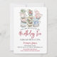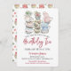 A gorgeous birthday tea party invitation. This pretty design features watercolor stacks of vintage teacups and simple typography. Easy to customise with your own tea party event details.