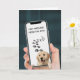 Golden retriever in cell phone frame with text message on black and blue plaid background for birthday from the dog