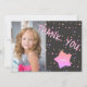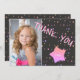 A cute birthday thank you card for your friends and family. Upload your photo and personalise the card with your name. This girl thank you card has a cute colourful star pattern on the front and the back side. The name is in the middle of a big pink star.