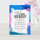 Birthday blessing inspirational quote scripture greeting card depicts an abstract frame design with blue and pink brush strokes. It features a portion of Bible Verse Numbers 6 24-26, "The Lord bless you and keep you; The Lord make His face shine upon you, ... and give you peace."