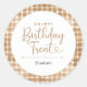 Birthday Treat Beige Gingham Script Classic Round Sticker