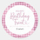 Birthday Treat Pink Gingham Script Classic Round Sticker