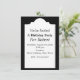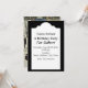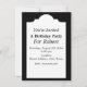This flat card party invitation has a vintage image of a winter street scene with an antique car, stores and people in snow on the back. Customise your information in the white frame on the black background on the front.