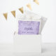 A trendy violet background. Decorated with confetti. Personalise and add a name, age and the date.