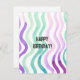 Wavy purple and green watercolor lines. Cute brush strokes watercolor lines. Modern and young pattern, personalizable happy birthday card. Personalise this with your own wishes, name or anything you like!