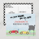 This fun race car birthday invitation features kids' birthday invitation cute modern, with a fun colourful race car track, on your mark get set, go cartoon whimsical simple cool, simple modern minimalist boy, racing red yellow derby, race on over cars, boys race car toddler kids, with chequered flag speedway minimal, trendy stylish children cartoon graphic