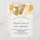 For an elegant 21st (or any age) birthday. A chic white background. Decorated with faux gold glitter drips, paint dripping look and balloons. Personalise and add a name, age 21 and party details. The name is written with a hand lettered style script