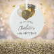 An ornament for a girly and glamourous 18th (or any age) birthday . A white background with golden leopard pattern printed balloons. Personalise and add a date, a name and age.