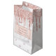 Elegant, and glamourous for a 21st (or any age) birthday. A stylish white background, decorated with rose gold faux glitter drips, paint dripping look. Personalise and add the monogram's initials. A rose gold band. Add a name, age 21 and a date. Dark rose gold text. Can be used both as a gift bag for the birthday girl or as a party favour bag.