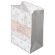 Elegant, and glamourous for a 21st (or any age) birthdayA stylish white background. Personalise and add the monogram's initials. Add a name, age 21 and a date. A rose gold band. Dark rose gold text. Can be used both as a gift bag for the birthday girl or as a party favour bag.