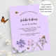 A violet, lavender coloured background. Decorated with bees and painted wildflowers in violet and pink. Personalise and add a name and party details.