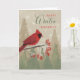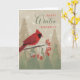 Celebrate a special day with the spirit of the winter season, featuring a bright red cardinal among trees and snowflakes, bringing cozy seasonal cheer.