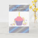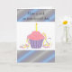 A pretty birthday design with a big pink cupcake and ribbons and soft colours.
