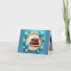 A festive birthday card featuring a classic birthday cake with colourful frosting and lit candles. Five brightly coloured balloons with curling ribbons float above the cake. The background is a clear blue sky. On the inside image of card has a blue background with the text “HAPPY BIRTHDAY” in a block font.