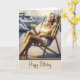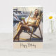 Woman sitting in a beach chair with a margarita drink for her birthday.