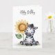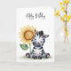 Adorable watercolor illustration featuring a cheerful zebra sitting before a sunflower isolated on a crisp white background. This delightful piece can easily adapt to different backdrops.