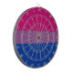 This design features the bisexual pride flag, which was first designed by Michael Page in 1998. It was intended to give the bisexual community its own symbol comparable to the gay pride flag. In the flag, the pink is for same gender attraction, blue is for different gender attraction, and purple is to represent the attraction across the gender spectrum.