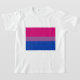 This design features the bisexual pride flag, which was first designed by Michael Page in 1998. It was intended to give the bisexual community its own symbol comparable to the gay pride flag. In the flag, the pink is for same gender attraction, blue is for different gender attraction, and purple is to represent the attraction across the gender spectrum.