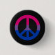 Classic Round Button with peace symbol design in colours of bisexuality; pink, purple and blue stripes pride flag, on black background