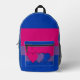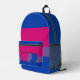 Backpack with bisexuality pride flag with pink, purple and blue stripes, striped pattern design with hearts, bi pride design
