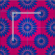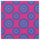 Fabric with a seamless modern geometric flower pattern in the colours of the bisexuality pride flag; a pink, purple, and blue bi pride design, a pattern on a pink background