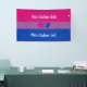 Banner sign with the bisexuality pride flag with little hearts in the centre of the design. Pink, purple, and blue flag of the bi pride movement; with an editable text field for your name or message